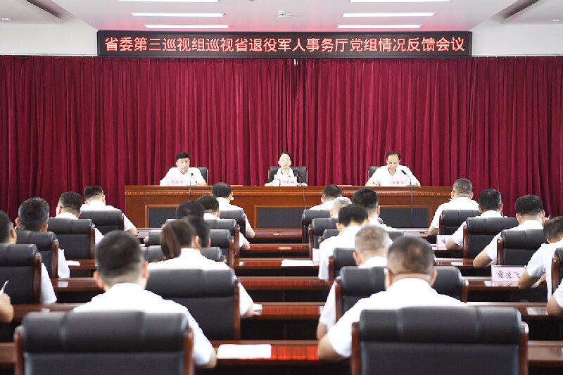 根據省委部署,2025年8月1日,省委第三巡視組向省退役軍人事務廳黨組反饋了巡視情況。組長付印紅分別向省退役軍人事務廳黨組書記、廳長萬春江和黨組領導班子進行會議反饋,會議傳達了省委書記黃強在聽取十二屆省委第六輪巡視綜合情況匯報時的講話精神。萬春江主持向領導班子反饋會議并作表態發言。
